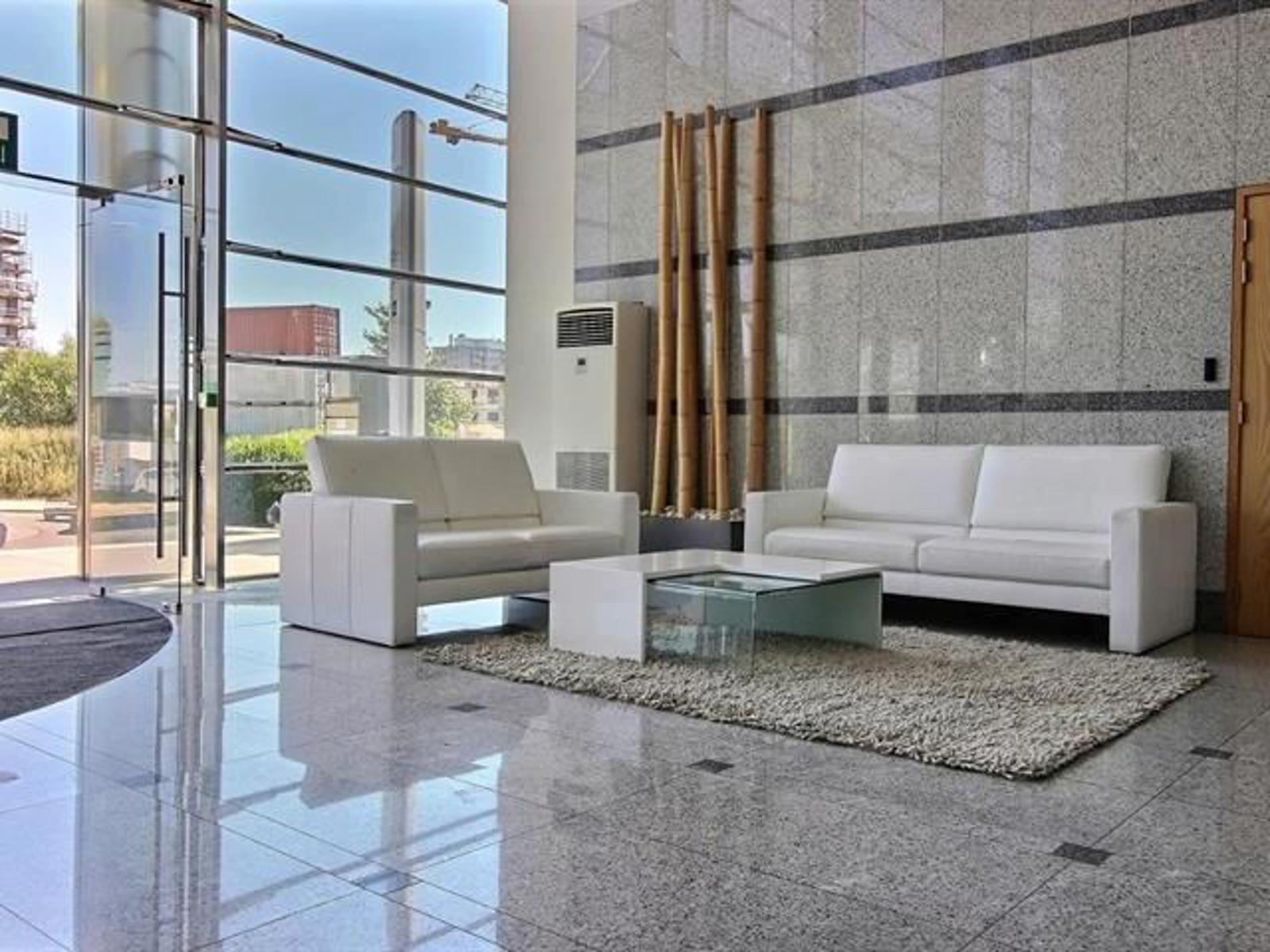 - Charges : ± 34,14€/m²/an (Réceptionniste, sécurité, assurance, parties communes (eau, gaz, électricité, nettoyage), nettoyage des fenêtres, enlèvement des ordures, maintenance (jardin, HVAC, ascenseur), système de détection de gaz, inspection (ascenseur, porte de garage, électricité), frais de gestion)