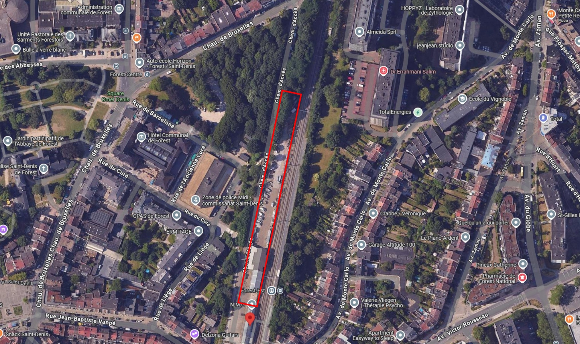A côté de la Gare de Forest-Est, un terrain à bâtir de 38a14ca avec 2 entrepôts sur le terrain. Possibilité de construire 16 maisons neuves. Etude en cours.
