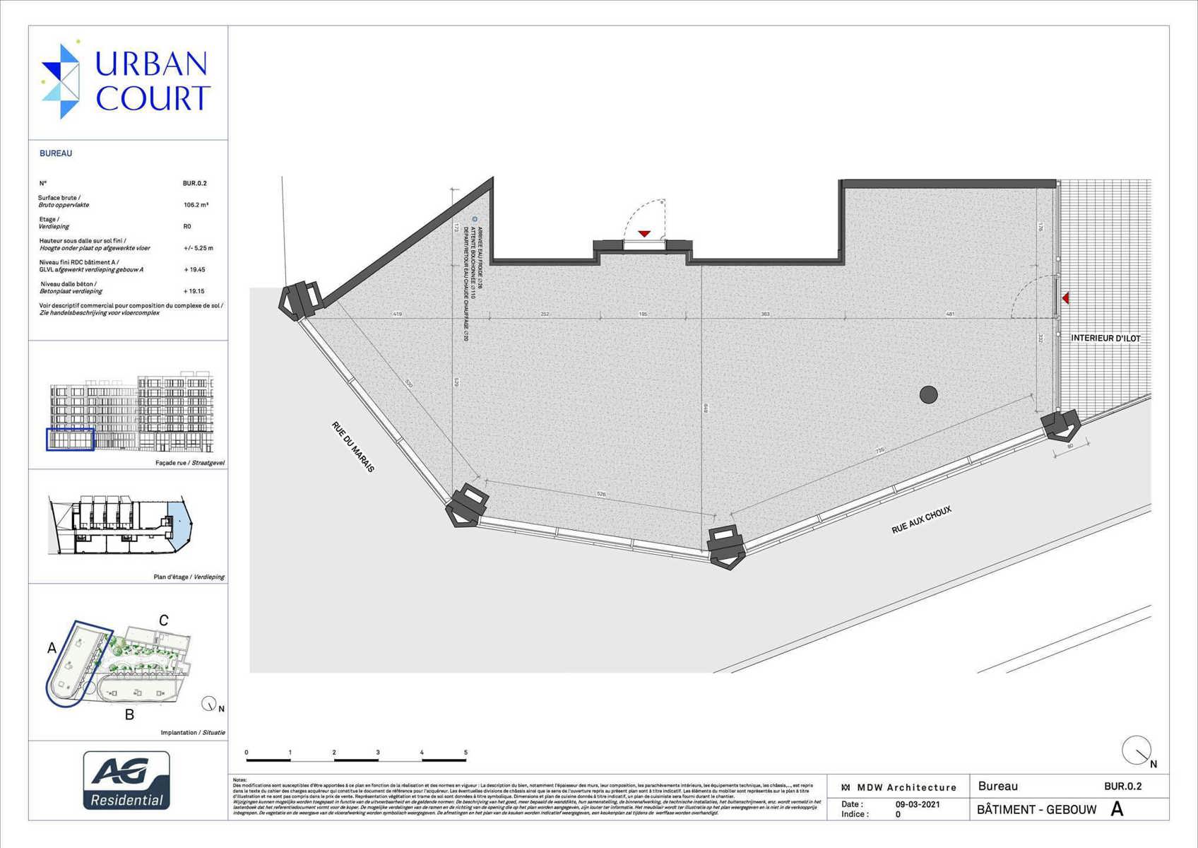 BRUXELLES – Urban Court, dans le quartier animé du Marais, spacieux bureau de ±106 m² en double hauteur situé au rez-de-chaussée du bâtiment A. Très lumineux, le local est vendu casco, modulable et personnalisable. Proche du métro, des commerces de la rue Neuve, et du centre-ville historique. Cave et parking en supplément (5.000€ et 30.000€) + 1 place de parking moto OFFERTE. Une localisation stratégique pour vos activités.